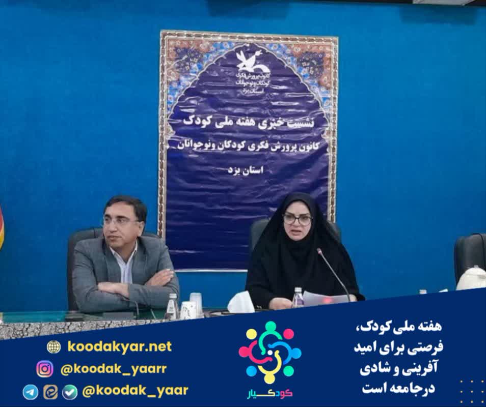 رییس کارگروه هفته ملی کودک استان یزد گفت: هفته ملی کودک، فرصت بسیار خوبی برای افزایش فضای مفرح و شادی در جامعه و امید آفرینی و شادی در خانواده و اقشار مختلف جامعه است.