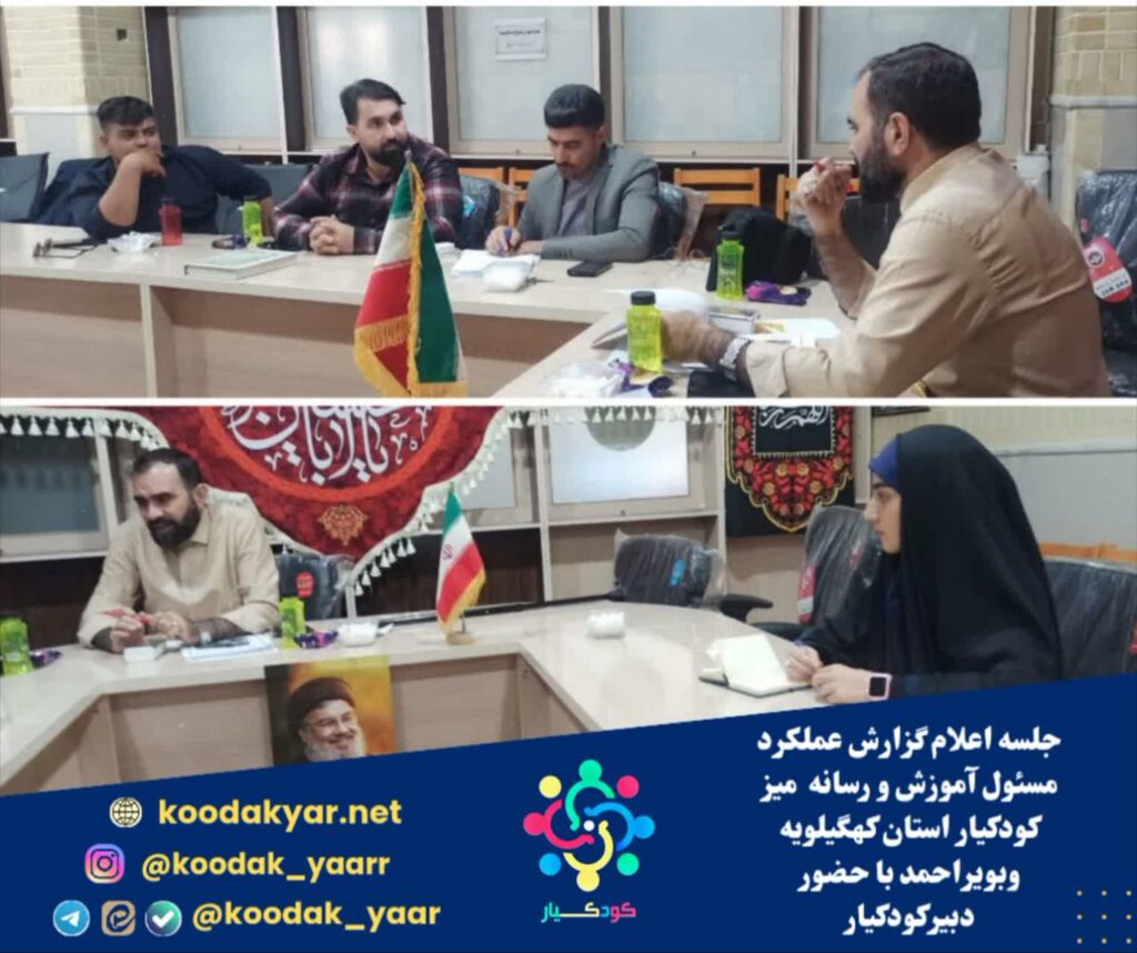 جلسه حضوری اعلام گزارش عملکرد مسئول آموزش و رسانه میز کودکیار استان کهگیلویه وبویراحمد و حضور دبیرکودکیار (بصورت آنلاین ) در دفتر قرارگاه تحول استان